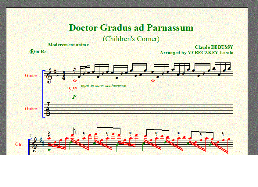 Переложение пьесы Клода Дебюсси DOCTOR GRADUS AD PARNASSUM для 6-ой гитары.