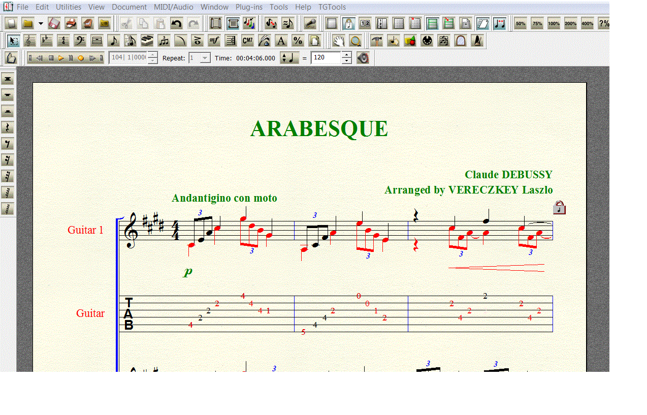 Переложение пьесы Клода Дебюсси ARABESQUE для дуэта 6-х гитар.