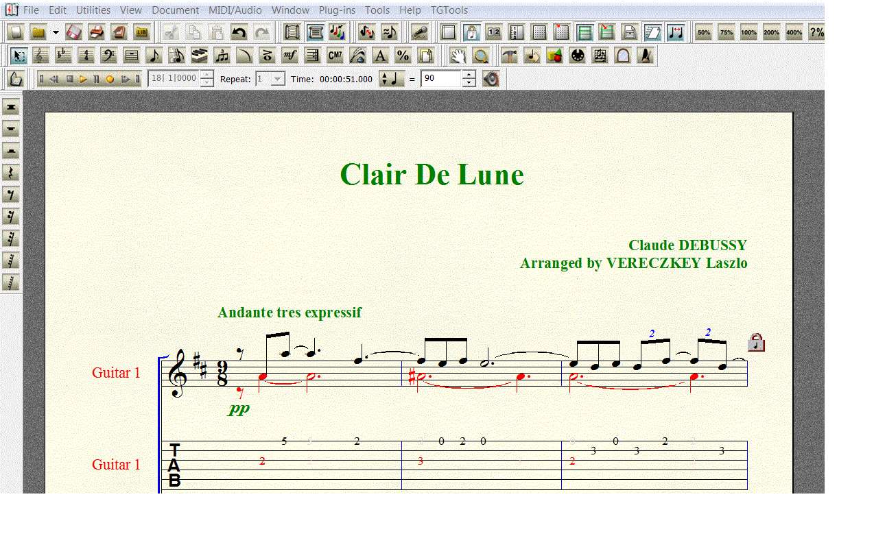 Переложение пьесы Клода Дебюсси CLAIR DE LUNE (Лунный свет) для дуэта 6-х гитар.