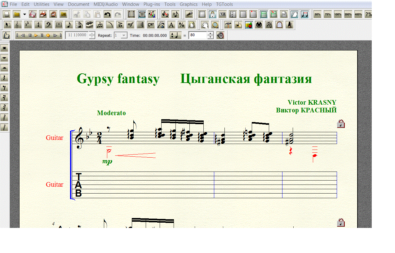 Под нотной строкой добавлена таблатурная строка, что бы вы сами могли создать и редактировать собственную «распальцовку».