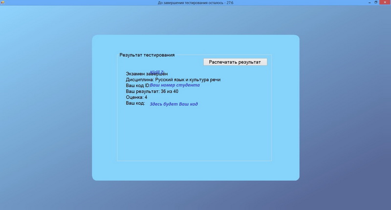 Вопросы в тесте для сверки, в программе Testclient предмет должен называться точно так же как этот:
