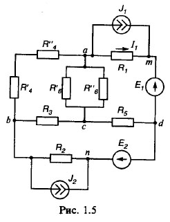 Расчётно-графическая работа №1 по ТОЭ "Расчет режима в сложной электрической цепи постоянного тока методами законов Кирхгофа, контурных токов, узловых потенциалов" по задачнику «Теоретические основы электротехники: Методические указания и контрольные задания для студентов технических специальностей вузов» / Л.А. Бессонов, И.Г. Демидова, М.Е. Заруди и др. – 3-е изд., испр. – М.: Высш. шк., 2003. с. 11-19, задача 1.1, вариант 16, рис. 1.5, табл. 1.1