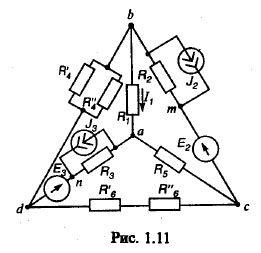 1. Упростить схему, заменив последовательно и параллельно соединенные резисторы четвертой и шестой ветвей эквивалентными. Дальнейший расчет (п. 2 – 10) вести для упрощенной схемы.