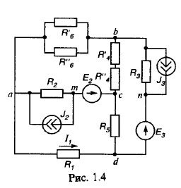 1. Упростить схему, заменив последовательно и параллельно соединенные резисторы четвертой и шестой ветвей эквивалентными. Дальнейший расчет (п. 2 – 10) вести для упрощенной схемы.
