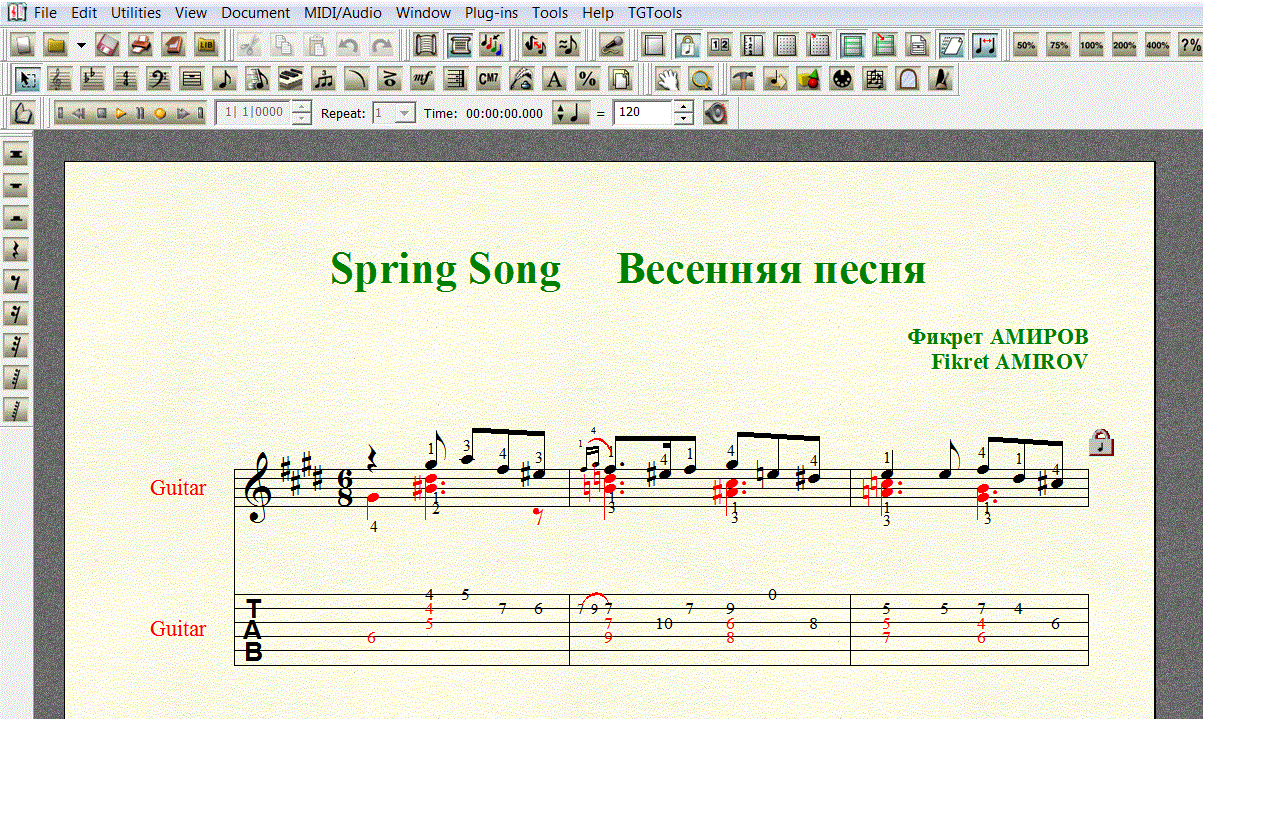 Фикрет Амиров ВЕСЕННЯЯ ПЕСНЯ, пьеса для 6-й гитары.