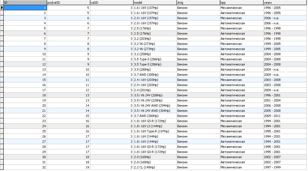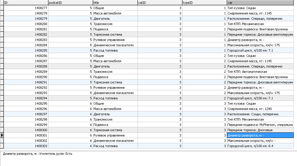 Готовая MySQL база данных для сайта с характеристиками автомобилей, разделённых на марки, модели и версии моделей. Для каждой модели блоки с описаниями технических характеристик машин. Описаны практически все выпускавшиеся когда-либо легковые автомобили. Всего 118 марок, 3414 модели и 19106 конкретных версий автомобилей, для которых есть изображение без ватермарок.
