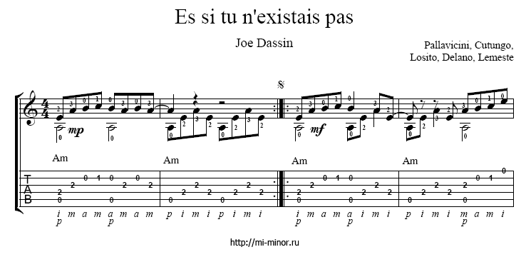 В архиве – всё для быстрого и удобного разучивания композиции: PDF-файл с нотами, табулатурой, аппликатурой и рекомендациями исполнителю; файл композиции в формате MIDI, файл в формате Guitar Pro 5.2, запись в формате MP3, которую можно прослушать здесь: http://mi-minor.ru/tabs/42.htm