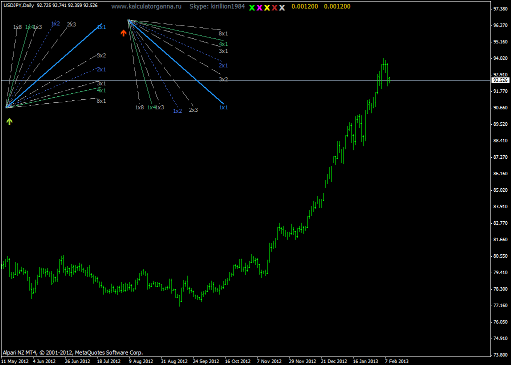 Это уникальный в своем роде скрипт. Учитывая сложность ручного построения углов, мы создали уникальный скрипт, который адаптируется под любой финансовый инструмент и рассчитывает исключительно правильные углы. С нашим скриптом построение углов займет считанные секунды и станет невообразимо легкой задачей. С ним вы сможете построить целые веера углов, отдельные единичные углы, коробку 52 , 90 , 144.