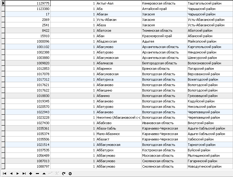 MySQl дамп базы данных с таблицами 230 стран, для каждой страны есть список городов, всего 1167514 городов. Для городов также есть информация о районе и области.