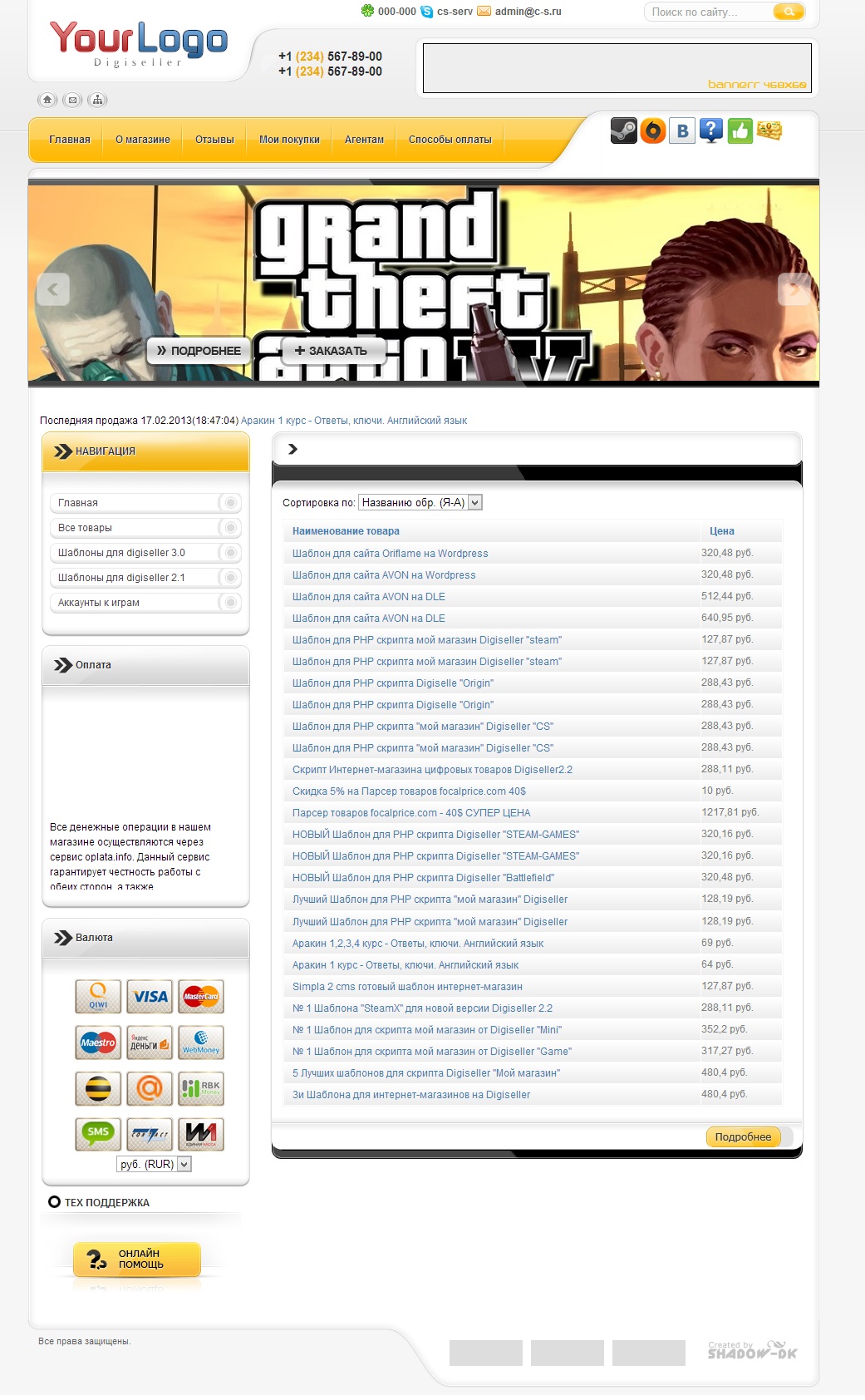 Скрипт магазина цифровых товаров с мгновенной доставкой товара!