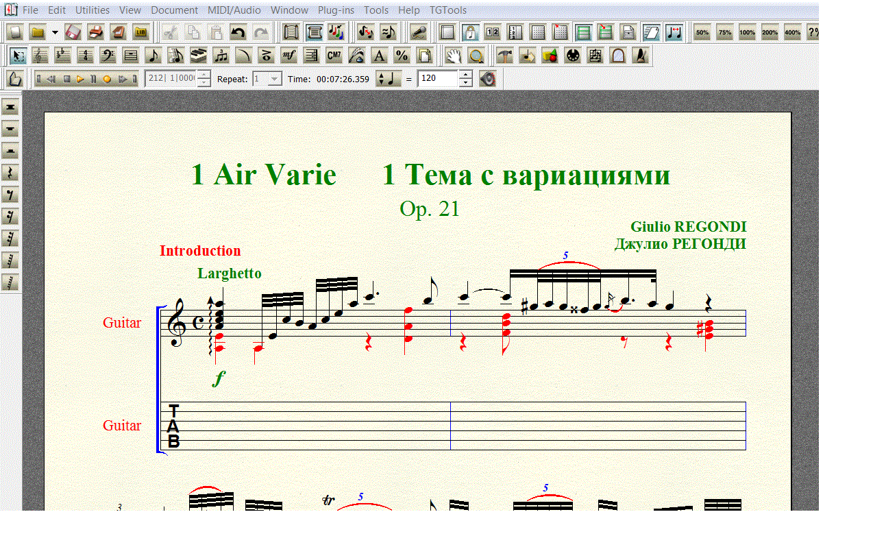 Исполнено и записано на обычной гитаре с MIDI-датчиком Shadow SH 075 с последующей редакцией MIDI-протокола в Finale для публикации гитарных нот в электронном виде. По сему, нет смысла предъявлять претензии к демо-аудио, постольку, поскольку… :)))