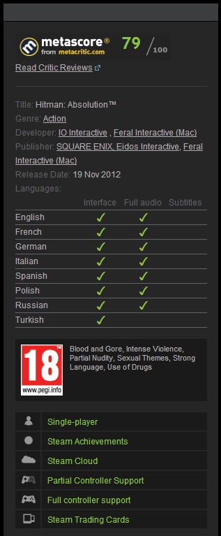 Hitman: Absolution рассказывает историю самого личного контракта наемного убийцы. Преданный Агентством и затравленный полицией, Агент 47 ищет искупления в испорченном и изуродованном мире.