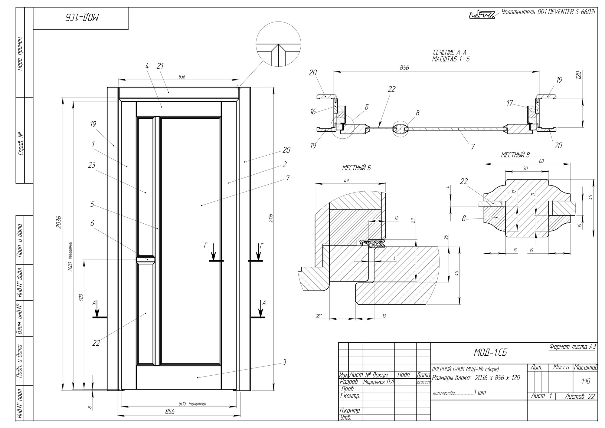 Дверной блок с параметрическими уравнениями: ВЫСОТА БЛОКА, ШИРИНА БЛОКА, ГЛУБИНА БЛОКА. При изменении этих параметров, меняются размеры деталей сборки и размеры в чертежах и спецификации. Подробно проработанная сборка блока. Чертежи для изготовления (сборочный чертеж, спецификация, подробная деталировка) и фотопроект.