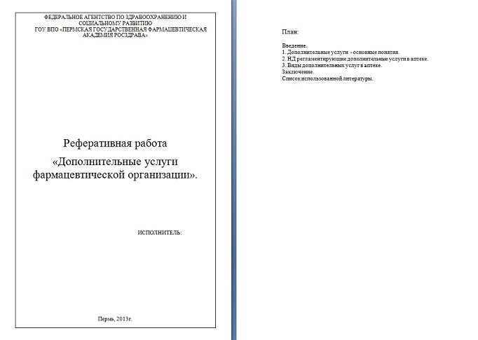 Реферативная работа «Дополнительные услуги фармацевтической организации»