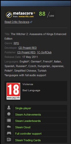 Название: The Witcher 2: Assassins of Kings Enhanced Edition steam gift
