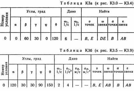 Решение задачи К3 Вариант 60. Задание: Плоский механизм состоит из стержней 1, 2, 3, 4 и ползуна В или Е (рис. КЗ.0 — К3.7) или из стержней 1, 2, 3 и ползунов В и E (рис. К3.8, К3.9), соединенных друг с другом и с неподвижными опорами O1, O2 шарнирами; точка D находится в середине стержня АВ. Длины стержней равны соответственно l1 = 0,4 м, l1 = 1,2 м, l3 = 1,4 м, l4 = 0,6 м. Положение механизма определяется углами α, β, γ, φ, θ. Значения этих углов и других заданных величин указаны в табл. КЗа (для рис. 0—4) или в табл. КЗб (для рис. 5—9); при этом в табл. КЗа ω1 и ω4 — величины постоянные. Определить величины, указанные в таблицах в столбцах «Найти». Дуговые стрелки на рисунках показывают, как при построении чертежа механизма должны откладываться соответствующие углы: по ходу или против хода часовой стрелки (например, угол γ на рис. 8 следует отложить от DB по ходу часовой стрелки, а на рис. 9 — против хода часовой стрелки и т. д.). Построение чертежа начинать со стержня, направление которого определяется углом α; ползун с направляющими для большей наглядности изобразить так, как в примере КЗ (см. рис. КЗб). Заданные угловую скорость и угловое ускорение считать направ¬ленными против часовой стрелки, а заданные скорость vB и ускорение аB — от точки В к b (на рис. 5—9).