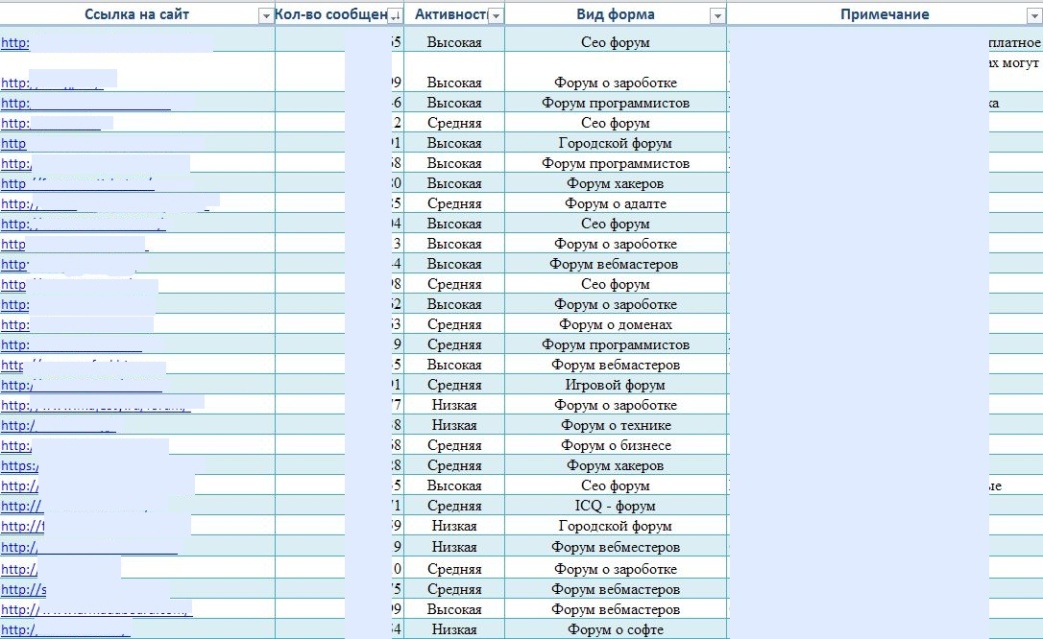 Представляю вашему вниманию полную базу сео форумов рунета, которые были собраны вручную и отобраны на основе личного опыта. Благодаря данной базе у вас появится возможность увеличить продажи вашего товара и прорекламировать свои услуги. Таким образом, вы сможете заявить о себе на самых популярных форумах русскоязычного сегмента интернета. В базе 176 ссылок на форумы, для вашего удобства все они рассортированы: по количеству тем, активности, вида и отдельных примечаний. Примечания касаются того есть ли на форуме коммерческие разделы, кто может создавать в них сообщения и на что в целом ориентирован ресурс. База была отсортирована и проверена полностью вручную.
