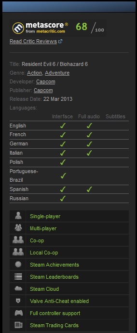- Игра в одиночку или вместе с другом — «Resident Evil 6» подходит как ценителям одиночной игры, так и тем, кто любит совместное прохождение (кампания Ады Вонг рассчитана только на одного игрока).