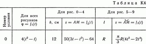 Решение контрольной К4 Вариант 20. Задание для задачи К4: Прямоугольная пластина (рис. К4.0 — К4.4) или круглая пластина радиуса R = 60 см (рис. К4.5 — К4.9) вращается вокруг неподвижной оси по закону фи = f1(t), заданному в табл. К4. Положительное направление отсчета угла фи показано на рисунках дуговой стрелкой. На рис. 0, 1, 2, 5, 6 ось вращения перпендикулярна плоскости пластины и проходит через точку О (пластина вращается в своей плоскости); на рис. 3, 4, 7, 8, 9 ось вращения OO1 лежит в плоскости пластины (пластина вращается в пространстве). По пластине вдоль прямой BD (рис. 0—4) или по окружности радиуса R (рис. 5—9) движется точка М; закон относительного движения, т.е. зависимость s = AM = f2(t) (s выражена в сантиметрах, t — в секундах), задан в таблице отдельно для рис. 0—4 и для рис. 5—9; там же даны размеры b и l. На всех рисунках точка М показана в положении, при котором s = АМ>0 (при s<0 точка М находится по другую сторону от точки А). Необходимо найти абсолютную скорость и абсолютное ускорение точки М в момент времени t1 = 1 с.