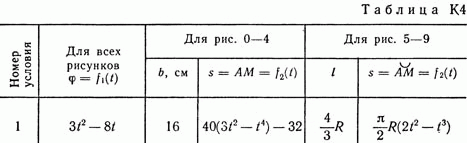 Решение контрольной К4 Вариант 41. Задание для задачи К4: Прямоугольная пластина (рис. К4.0 — К4.4) или круглая пластина радиуса R = 60 см (рис. К4.5 — К4.9) вращается вокруг неподвижной оси по закону фи = f1(t), заданному в табл. К4. Положительное направление отсчета угла фи показано на рисунках дуговой стрелкой. На рис. 0, 1, 2, 5, 6 ось вращения перпендикулярна плоскости пластины и проходит через точку О (пластина вращается в своей плоскости); на рис. 3, 4, 7, 8, 9 ось вращения OO1 лежит в плоскости пластины (пластина вращается в пространстве). По пластине вдоль прямой BD (рис. 0—4) или по окружности радиуса R (рис. 5—9) движется точка М; закон относительного движения, т.е. зависимость s = AM = f2(t) (s выражена в сантиметрах, t — в секундах), задан в таблице отдельно для рис. 0—4 и для рис. 5—9; там же даны размеры b и l. На всех рисунках точка М показана в положении, при котором s = АМ>0 (при s<0 точка М находится по другую сторону от точки А). Необходимо найти абсолютную скорость и абсолютное ускорение точки М в момент времени t1 = 1 с.