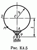 Решение контрольной К4 Вариант 50. Задание для задачи К4: Прямоугольная пластина (рис. К4.0 — К4.4) или круглая пластина радиуса R = 60 см (рис. К4.5 — К4.9) вращается вокруг неподвижной оси по закону фи = f1(t), заданному в табл. К4. Положительное направление отсчета угла фи показано на рисунках дуговой стрелкой. На рис. 0, 1, 2, 5, 6 ось вращения перпендикулярна плоскости пластины и проходит через точку О (пластина вращается в своей плоскости); на рис. 3, 4, 7, 8, 9 ось вращения OO1 лежит в плоскости пластины (пластина вращается в пространстве). По пластине вдоль прямой BD (рис. 0—4) или по окружности радиуса R (рис. 5—9) движется точка М; закон относительного движения, т.е. зависимость s = AM = f2(t) (s выражена в сантиметрах, t — в секундах), задан в таблице отдельно для рис. 0—4 и для рис. 5—9; там же даны размеры b и l. На всех рисунках точка М показана в положении, при котором s = АМ>0 (при s<0 точка М находится по другую сторону от точки А). Необходимо найти абсолютную скорость и абсолютное ускорение точки М в момент времени t1 = 1 с.