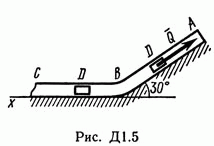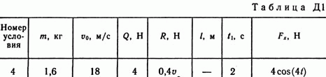 Решение Д1 В54. Условие задачи: Груз D массой m, получив в точке A начальную скорость v0 движется в изогнутой трубе AВС, расположенной в вертикальной плоскости; участки трубы или оба наклонные, или один горизонтальный, а другой наклонный (рис. Д1.0 — Д1.9, табл. Д1). На участке AВ на груз кроме силы тяжести действуют постоянная сила Q (ее направление показано на рисунках) и сила сопротивления среды R, зависящая от скорости v груза (направлена против движения); трением груза о трубу на участке AВ пренебречь. В точке В груз, не изменяя своей скорости, переходит на участок ВС трубы, где на него кроме силы тяжести действуют сила трения (коэффициент трения груза о трубу f = 0,2) и переменная сила F, проекция которой Fx на ось х задана в таблице. Считая груз материальной точкой и зная расстояние AВ = l или время t1 движения груза от точки А до точки В, найти закон движения груза на участке ВС, т. е. х = f(t), где х = BD.