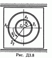 Решение задачи по теормеху из Тарга С.М. Д3 В84. Условие задачи: Механическая система состоит из грузов D1 массой m1 = 2 кг и D2 массой m2 = 6 кг и из прямоугольной вертикальной плиты массой m3 = 12 кг, движущейся вдоль горизонтальных направляющих (рис. Д3.0 — Д3.9, табл. Д3). В момент времени t0 = 0, когда система находилась в покое, под действием внутренних сил грузы начинают двигаться по желобам, представляющим собой окружности радиусов r = 0,4 м и R = 0,8 м. При движении грузов угол фи1 = ∟A1C3D1 изменяется по закону фи1 = f1(t), а угол фи2 = ∟A2C3D2 — по закону фи2 = f2(t). В табл. ДЗ эти зависимости даны отдельно для рис. 0—4 и 5—9, где фи выражено в радианах, t — в секундах. Считая грузы материальными точками и пренебрегая всеми сопротивлениями, определить закон изменения со временем величины, указанной в таблице в столбце «Найти», т. е. x3 = t3(t) и N = f(t), где x3 — координата центра C3 плиты (зависимость x3 = f3(t) определяет закон движения плиты), N — полная нормальная реакция направляющих.