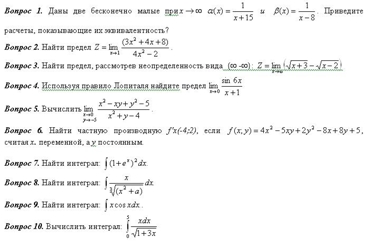 Вопрос 1. Даны две бесконечно малые при . Приведите расчеты, показывающие их эквивалентность?