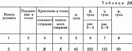 Решение задачи Д8 Вариант 15 - по термеху из Тарга С.М. 1989 года. Условие к задаче Динамика 8 (страница 78): Вертикальный вал АК (рис. Д8.0 — Д8.9), вращающийся с постоянной угловой скоростью омега = 10 с-1, закреплен подпятником в точке A и цилиндрическим подшипником в точке, указанной в табл. Д8 в столбце 2 (АВ = BD = DE = ЕК = a). К валу жестко прикреплены тонкий однородный ломаный стержень массой m = 10 кг, состоящий из частей 1 и 2 (размеры частей стержня показаны на рисунках, где b = 0,1 м, а их массы m1 и m2 пропорциональны длинам), и невесомый стержень длиной l = 4b с точечной массой m3 = 3 кг на конце; оба стержня лежат в одной плоскости. Точки крепления стержней указаны в таблице в столбцах 3 и 4, а углы альфа, бетта, сигма, фи даны в столбцах 5—8. Пренебрегая весом вала, определить реакции подпятника и подшипника. При подсчетах принять а = 0,6 м.