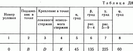 Решение задачи Д8 Вариант 50 - по термеху из Тарга С.М. 1989 года. Условие к задаче Динамика 8 (страница 78): Вертикальный вал АК (рис. Д8.0 — Д8.9), вращающийся с постоянной угловой скоростью омега = 10 с-1, закреплен подпятником в точке A и цилиндрическим подшипником в точке, указанной в табл. Д8 в столбце 2 (АВ = BD = DE = ЕК = a). К валу жестко прикреплены тонкий однородный ломаный стержень массой m = 10 кг, состоящий из частей 1 и 2 (размеры частей стержня показаны на рисунках, где b = 0,1 м, а их массы m1 и m2 пропорциональны длинам), и невесомый стержень длиной l = 4b с точечной массой m3 = 3 кг на конце; оба стержня лежат в одной плоскости. Точки крепления стержней указаны в таблице в столбцах 3 и 4, а углы альфа, бетта, сигма, фи даны в столбцах 5—8. Пренебрегая весом вала, определить реакции подпятника и подшипника. При подсчетах принять а = 0,6 м.