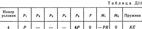 Решение задачи по теормеху из решебника С.М. Тарга 1989 г. Д11 Вариант 44. Условие к задаче Динамика 11 (Полное условие на странице 95): Механическая система состоит из тел 1, 2, …, 5 весом P1, Р2, …, P5 соответственно, связанных друг с другом нитями, намотанными на ступенчатые блоки 1 и 2 (рис. Д11.0 — Д11.9, табл. Д11). Радиусы ступенчатых блоков 1 и 2 равны соответственно R1 = R, r1 = 0,4R, R2 = R, r2 = 0,8R. При вычислении моментов инерции все блоки, катки и колеса считать однородными сплошными цилиндрами радиуса R. На систему кроме сил тяжести действует сила F, приложенная к телу 3 или 4 (если тело 3 в систему не входит, сила приложена в точке В к тележке), и пары сил с моментами М1, M2, приложенные к блокам 1 и 2; когда М<0, направление момента противоположно показанному на рисунке. На участке нити, указанном в таблице в столбце «Пружина», включена пружина с коэффициентом жесткости с (например, если в столбце стоит АВ, то участок АВ является пружиной, если AD, то AD — пружина и т.д.); в начальный момент времени пружина не деформирована. Составить для системы уравнения Лагранжа и найти закон изменения обобщенной координаты x, т. е. x = f(t), считая, что движение начинается из состояния покоя; определить также частоту и период колебаний, совершаемых телами системы при ее движении (о выборе координаты x см. «Указания»). Прочерк в столбцах таблицы, где заданы веса, означает, что соответствующее тело в систему не входит (на чертеже не изображать), а ноль — что тело считается невесомым, но в систему входит; для колес, обозначенных номером 4, Р4 — их общий вес (вес платформы такой тележки не учитывается).