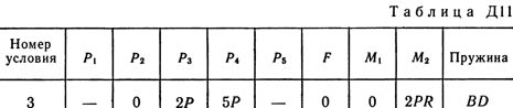 Решение задачи по теормеху из решебника С.М. Тарга 1989 г. Д11 Вариант 83. Условие к задаче Динамика 11 (Полное условие на странице 95): Механическая система состоит из тел 1, 2, …, 5 весом P1, Р2, …, P5 соответственно, связанных друг с другом нитями, намотанными на ступенчатые блоки 1 и 2 (рис. Д11.0 — Д11.9, табл. Д11). Радиусы ступенчатых блоков 1 и 2 равны соответственно R1 = R, r1 = 0,4R, R2 = R, r2 = 0,8R. При вычислении моментов инерции все блоки, катки и колеса считать однородными сплошными цилиндрами радиуса R. На систему кроме сил тяжести действует сила F, приложенная к телу 3 или 4 (если тело 3 в систему не входит, сила приложена в точке В к тележке), и пары сил с моментами М1, M2, приложенные к блокам 1 и 2; когда М<0, направление момента противоположно показанному на рисунке. На участке нити, указанном в таблице в столбце «Пружина», включена пружина с коэффициентом жесткости с (например, если в столбце стоит АВ, то участок АВ является пружиной, если AD, то AD — пружина и т.д.); в начальный момент времени пружина не деформирована. Составить для системы уравнения Лагранжа и найти закон изменения обобщенной координаты x, т. е. x = f(t), считая, что движение начинается из состояния покоя; определить также частоту и период колебаний, совершаемых телами системы при ее движении (о выборе координаты x см. «Указания»). Прочерк в столбцах таблицы, где заданы веса, означает, что соответствующее тело в систему не входит (на чертеже не изображать), а ноль — что тело считается невесомым, но в систему входит; для колес, обозначенных номером 4, Р4 — их общий вес (вес платформы такой тележки не учитывается).