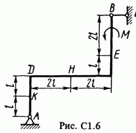 Решение задачи С1 Вариант 64 по теоретической механике из Тарга С.М. 1988 г.. Условие к задаче из раздела Статика 1 (стр. 12 в методичке Тарга): Жесткая рама, расположенная в вертикальной плоскости (рис. С1.0 — С1.9, табл. С1), закреплена в точке А шарнирно, а в точке В прикреплена или к невесомому стержню ВВ1, или к шарнирной опоре на катках; стержень прикреплен к раме и к неподвижной опоре шарнирами. На раму действуют пара сил с моментом М = 100 кН*м и две силы, значения, направления и точки приложения которых указаны в таблице (например, в условиях № 1 на раму действует сила F1 = 10 Н под углом 30° к горизонтальной оси, приложенная в точке K и сила F4 = 40 Н под углом 60° к горизонтальной оси, приложенная в точке H, и т. д.). Определить реакции связей в точках A, В, вызываемые заданными нагрузками. При окончательных расчетах принять l = 0,5 м.