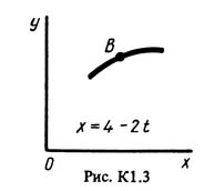 Решение задачи К1 Вариант 32 по теормеху из Тарга С.М. 1988 г.. Условие к задаче из раздела Кинематика 1 (стр. 19 в методичке Тарг С.М.): Точка B движется в плоскости xy (рис. К1.0-К1.9, табл. К1; траектория точки на рисунках показана условно). Закон движения точки задан уравнениями: x = f1(t), y = f2(t), где x и y выражены в сантиметрах, t – в секундах. Найти уравнение траектории; для момента времени t1 = 1 с определить скорость и ускорение точки, а также ее касательное ускорение и радиус кривизны в соответствующей точке траектории. Зависимость x = f1(t) указана непосредственно на рисунках, а зависимость y = f2(t) дана в табл. К1 (для рис. 0-2 в столбце 2, для рис. 3-6 в столбце 3, для рис. 7-9 в столбце 4).
