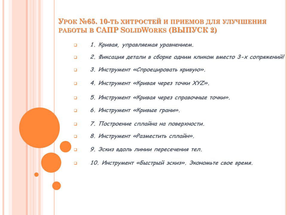 Урок №65. 10-ть хитростей и приемов для улучшения работы в САПР SolidWorks (ВЫПУСК 2)