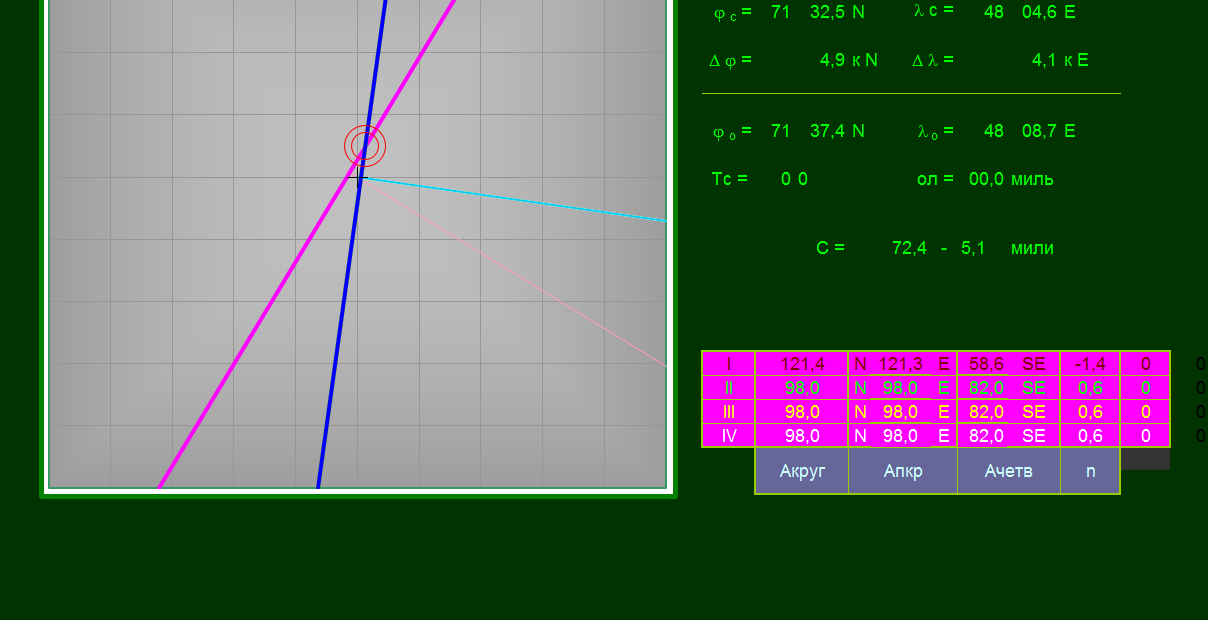 Расчет счислимого азимута;