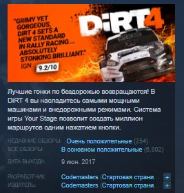 DiRT 4 - четвертая часть серии аркадных гонок. Игра бросает серьезный вызов даже опытным виртуальным гонщикам. Новая Академия DiRT 4 научит навыкам, которые необходимы для достижения вершин в автоспорте, и станет собственной игровой площадкой для оффроуда.
