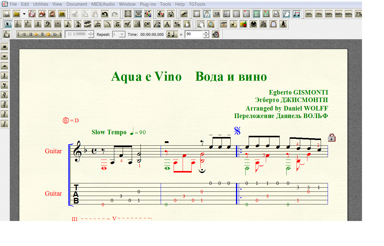 Переложение, нотный набор, и верстка выполнены в FINALE 2008 (расширение .mus). С ТАБУЛАТУРОЙ!