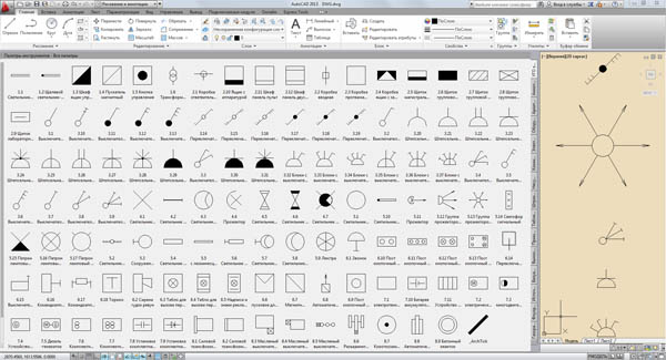 Условно-графические обозначения, для удобства, собраны в инструментальную палитру блоков AutoCAD