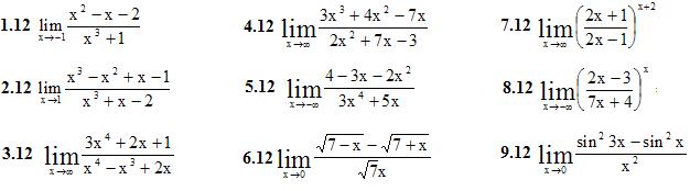 1.Найти указанные пределы (1-9) пределов