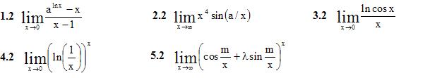 1. Найтиуказанные пределы, используя правило Лопиталя. (1-5)
