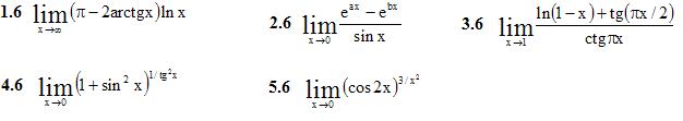 1. Найтиуказанные пределы, используя правило Лопиталя. (1-5)