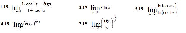 1. Найти указанные пределы, используя правило Лопиталя. (1-5)