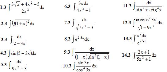 1. Найти неопределенные интегралы (в заданиях 1-5 результаты интегрирования проверить дифференцированием). (1-14)