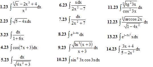 1. Найти неопределенные интегралы (в заданиях 1-5 результаты интегрирования проверить дифференцированием). (1-14)