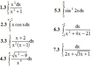 1. Вычислить определенные интегралы с точностью до двух знаков после запятой. (1-7)