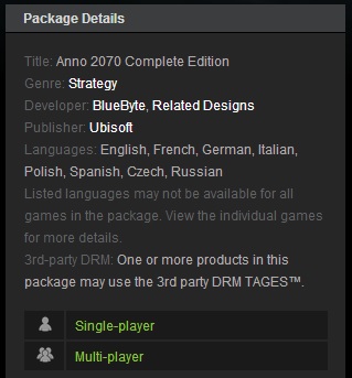 Anno 2070® Complete Edition includes the award-winning strategy game Anno 2070®, Anno 2070® Deep Ocean and all downloadable content packs.