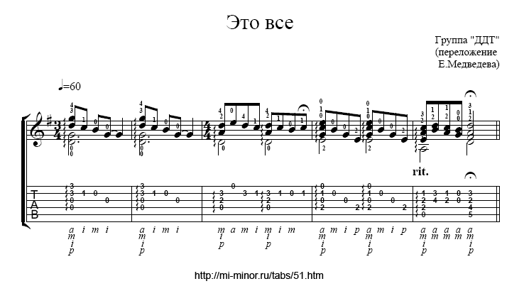 В архиве: PDF-файл с нотами, табулатурой, аппликатурой и рекомендациями исполнителю; файл композиции в формате MIDI, файл в формате Guitar Pro 6. Запись исполнения в формате MP3 можно прослушать и скачать здесь: http://mi-minor.ru/tabs/51.htm