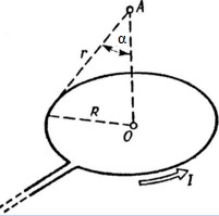 2. По тонкому кольцу радиусом R =20 см течет ток I=100 А. Определить магнитную индукцию В на оси кольца в точке А (рис. 53). Угол β = π/3.