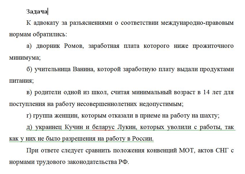 д) украинец Кучин и беларус Лукин, которых уволили с работы, так как у них не было разрешения на работу в России.